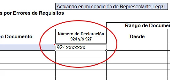 El No. de Declaración que se encuentra en la Solicitud de Autorización de Impresión por Imprenta, que puede ser 924 y/o 927